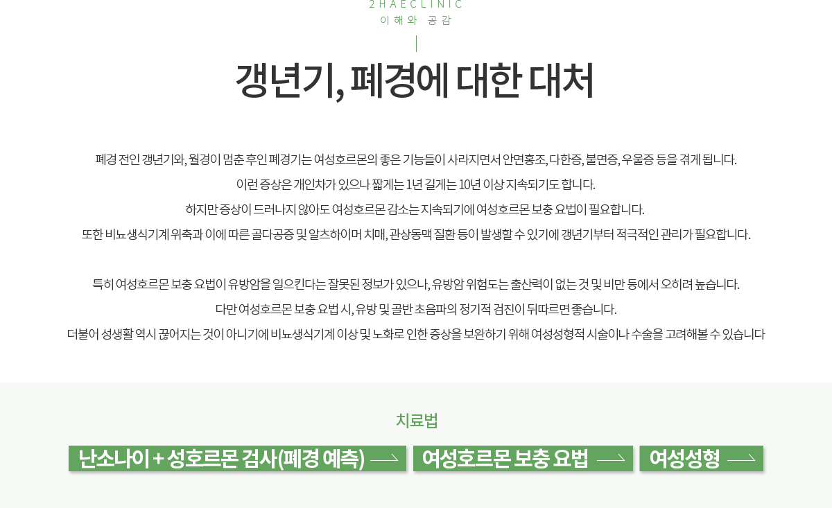 ÇÏÁö¸¸ Áõ»óÀÌ µå·¯³ªÁö ¾Ê¾Æµµ ¿©¼ºÈ£¸£¸ó °¨¼Ò´Â Áö¼ÓµÇ±â¿¡ ¿©¼ºÈ£¸£¸ó º¸Ãæ ¿ä¹ýÀÌ ÇÊ¿äÇÕ´Ï´Ù. ¶ÇÇÑ ºñ´¢»ý½Ä±â°è À§Ãà°ú ÀÌ¿¡ µû¸¥ °ñ´Ù°øÁõ ¹× ¾ËÃ÷ÇÏÀÌ¸Ó Ä¡¸Å, °ü»óµ¿¸Æ Áúȯ µîÀÌ ¹ß»ýÇÒ ¼ö Àֱ⿡ °»³â±âºÎÅÍ Àû±ØÀûÀÎ °ü¸®°¡ ÇÊ¿äÇÕ´Ï´Ù.